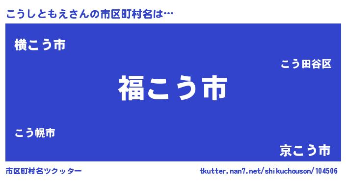| 男性向けラノベタイトル風あだ名 | 『こうしともえ~年齢イコール彼女いない歴の魔法使い~』 |