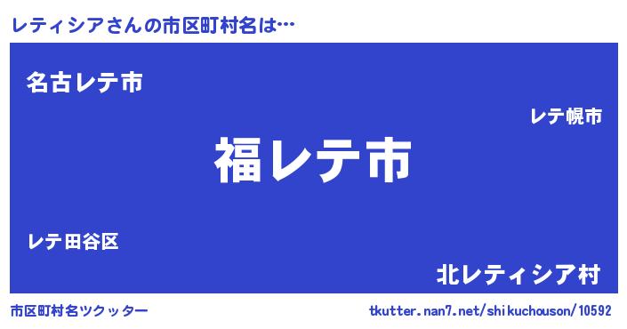 | 男性向けラノベタイトル風あだ名 | 『レティシア~年齢イコール彼女いない歴の魔法使い~』 |