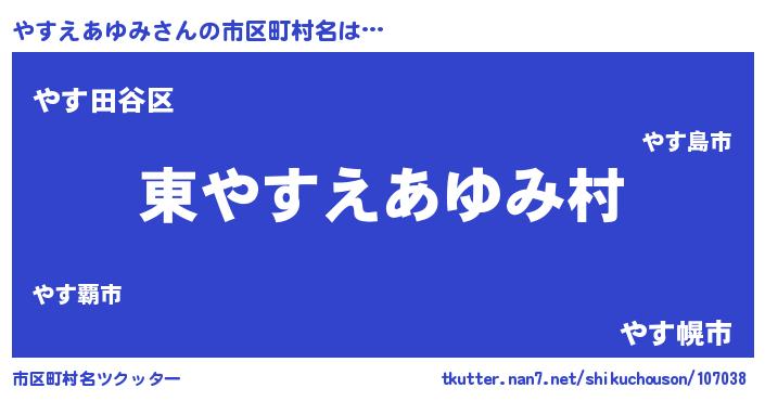 | 男性向けラノベタイトル風あだ名 | 『やすえあゆみの憂鬱』 |