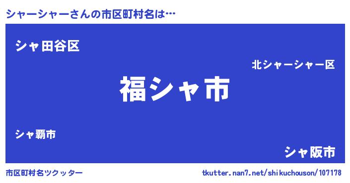 | 男性向けラノベタイトル風あだ名 | 『シャーシャー~年齢イコール彼女いない歴の魔法使い~』 |