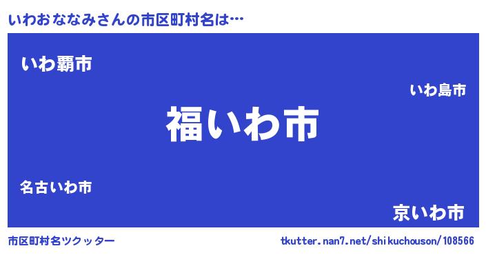 | 男性向けラノベタイトル風あだ名 | 『いわおななみ~年齢イコール彼女いない歴の魔法使い~』 |