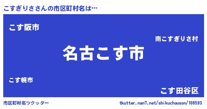 | 男性向けラノベタイトル風あだ名 | 『はたらくこすぎりささま!』 |