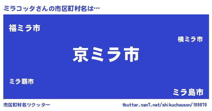 | 意味不明あだ名 | 『住所不定無職ミラコッタ(5歳)』 |