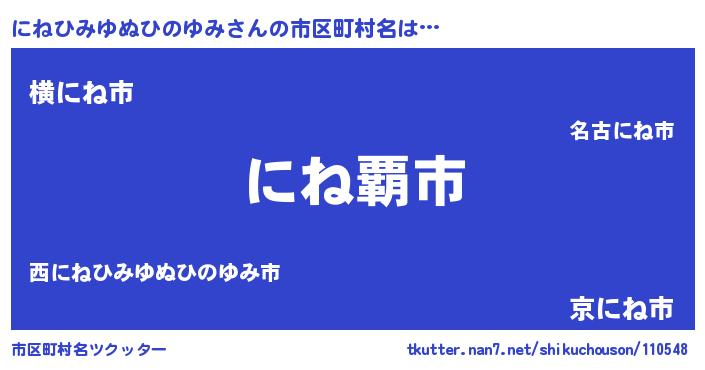 | 男性向けラノベタイトル風あだ名 | 『にねひみゆぬひのゆみという概念が存在しない退屈な世界 』 |