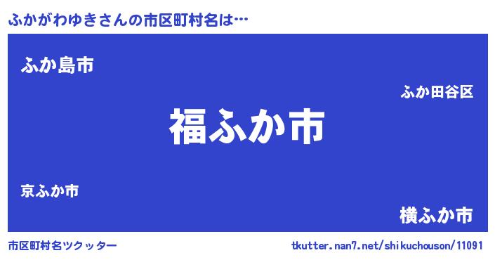| 男性向けラノベタイトル風あだ名 | 『ふかがわゆき~年齢イコール彼女いない歴の魔法使い~』 |
