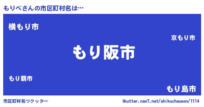 もりべさんの市区町村名は… 『もり阪市』『横もり市』『もり島市』 ツクッター #市区町村名ツクッター http://tkutter.nan7.net/shikuchouson/1114/