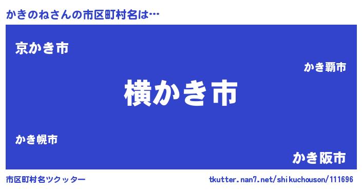 かきのねさんの市区町村名は… 『横かき市』『京かき市』『かき阪市』 ツクッター #市区町村名ツクッター http://tkutter.nan7.net/shikuchouson/111696/