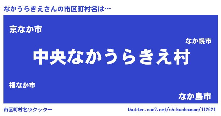 | 男性向けラノベタイトル風あだ名 | 『なかうらきえの憂鬱』 |