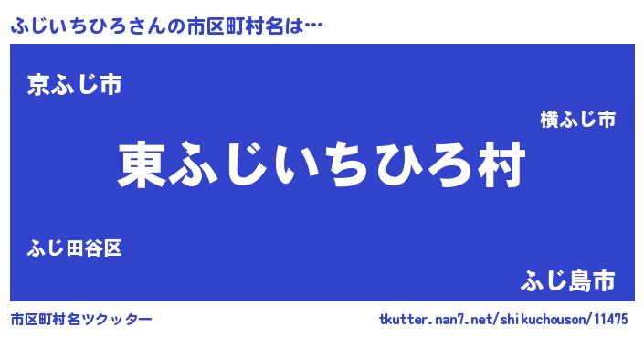 ふじいちひろさんの市区町村名は… 『東ふじいちひろ村』『京ふじ市』『ふじ島市』 ツクッター #市区町村名ツクッター http://tkutter.nan7.net/shikuchouson/11475/