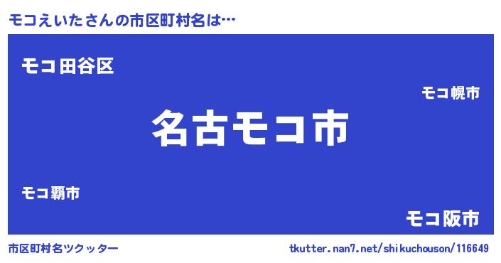 | 男性向けラノベタイトル風あだ名 | 『モコえいたに滅ぼされるだけの簡単なお仕事です』 |