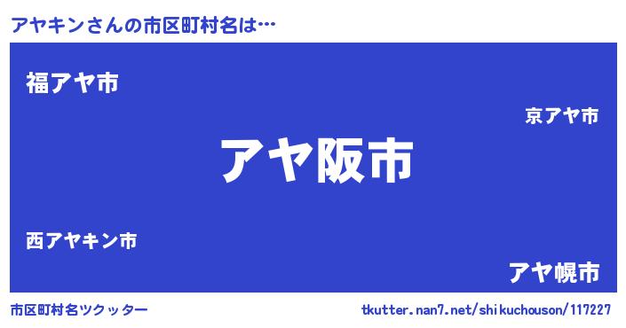 | 女子向けラノベタイトル風あだ名 | 『アヤキン様がみてる』 |