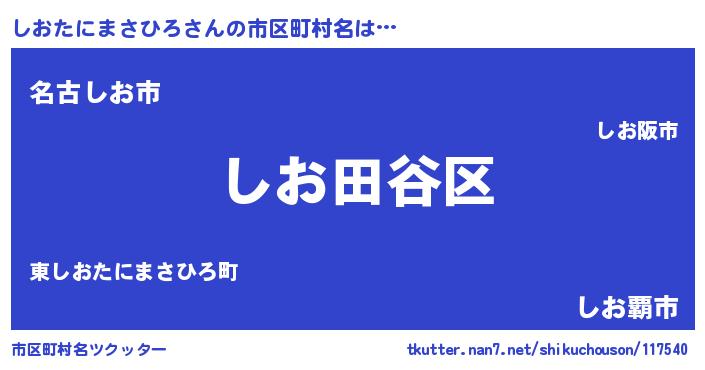 | 意味不明あだ名 | 『永久保存しおたにまさひろ』 |