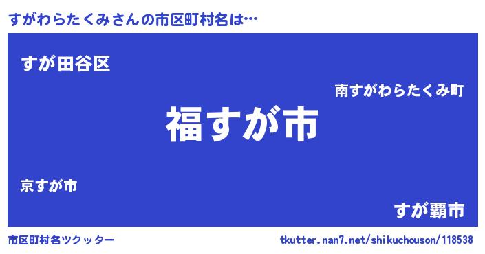 | 男性向けラノベタイトル風あだ名 | 『転生したらすがわらたくみだった件』 |