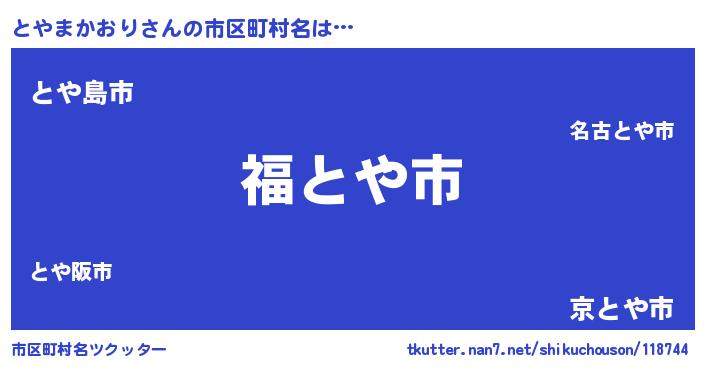 | 可愛いあだ名 | 『とやぷりん』『とやちゅっちゅ』 |