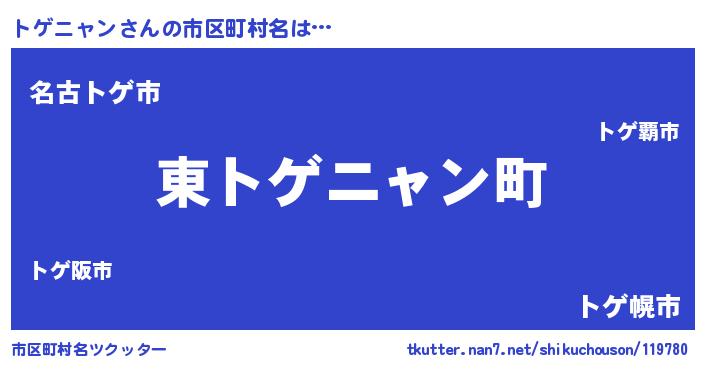 | 男性向けラノベタイトル風あだ名 | 『トゲニャンの憂鬱』 |