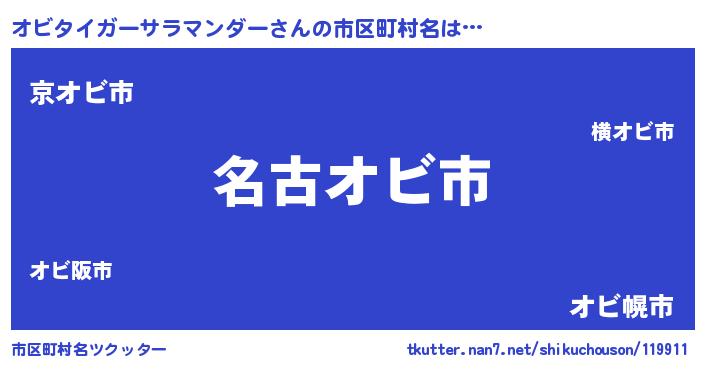 | 意味不明あだ名 | 『住所不定無職オビタイガーサラマンダー(84歳)』 |