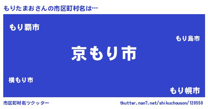 | 男性向けラノベタイトル風あだ名 | 『この素晴らしい世界にもりたまおを!』 |