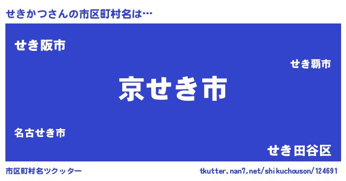 | 男性向けラノベタイトル風あだ名 | 『この素晴らしい世界にせきかつを!』 |