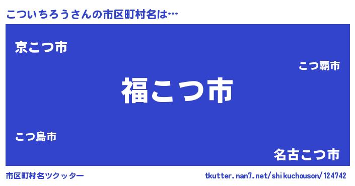 | 男性向けラノベタイトル風あだ名 | 『転生したらこついちろうだった件』 |