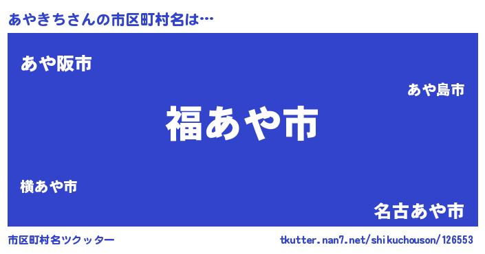 | 男性向けラノベタイトル風あだ名 | 『アヤキチスレイヤー』 |
