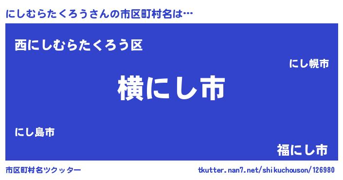 | 肩書あだ名 | 『にしむらたくろう閣下』 |