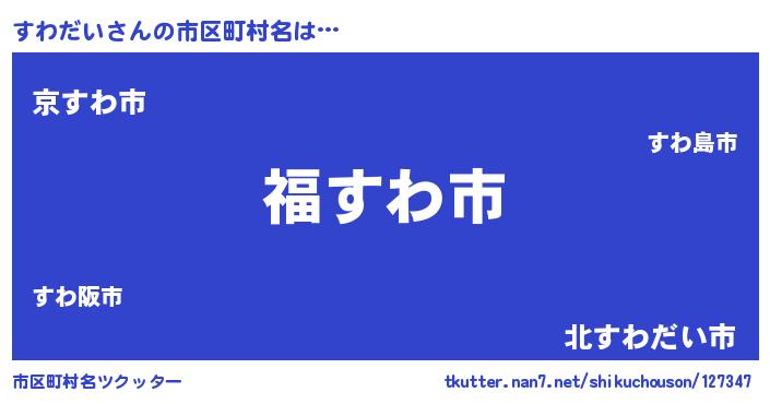 | 男性向けラノベタイトル風あだ名 | 『転生したらすわだいだった件』 |