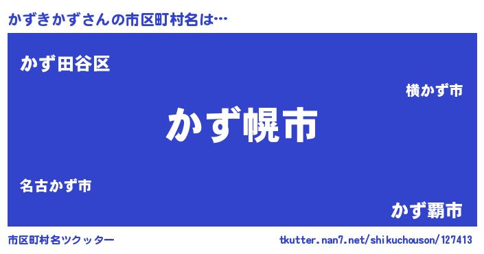 かずきかずさんの市区町村名は… 『かず幌市』『かず田谷区』『かず覇市』 ツクッター #市区町村名ツクッター http://tkutter.nan7.net/shikuchouson/127413/