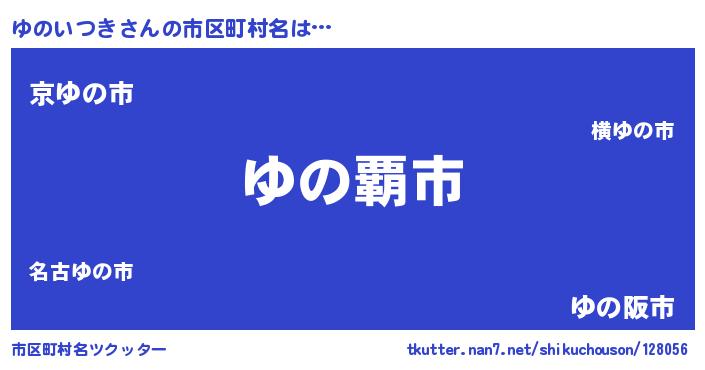 ゆのいつきさんの市区町村名は… 『ゆの覇市』『京ゆの市』『ゆの阪市』 ツクッター #市区町村名ツクッター http://tkutter.nan7.net/shikuchouson/128056/