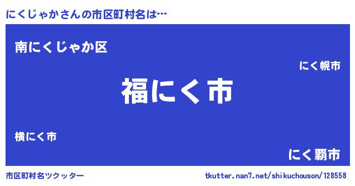 | 男性向けラノベタイトル風あだ名 | 『転生したらにくじゃかだった件』 |