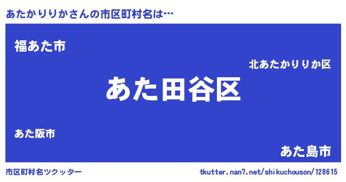 | 男性向けラノベタイトル風あだ名 | 『うちのあたかりりかが世界を掌握している!』 |