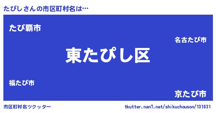| 男性向けラノベタイトル風あだ名 | 『たぴしの憂鬱』『魔弾の王とたぴし』 |