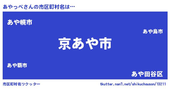 | 意味不明あだ名 | 『住所不定無職あやっぺ(65歳)』 |