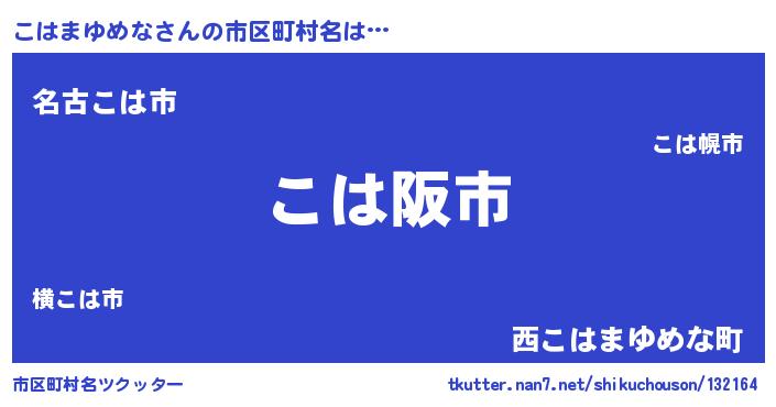 | 男性向けラノベタイトル風あだ名 | 『こはまゆめなの嫁は女の子じゃないと思った?』 |