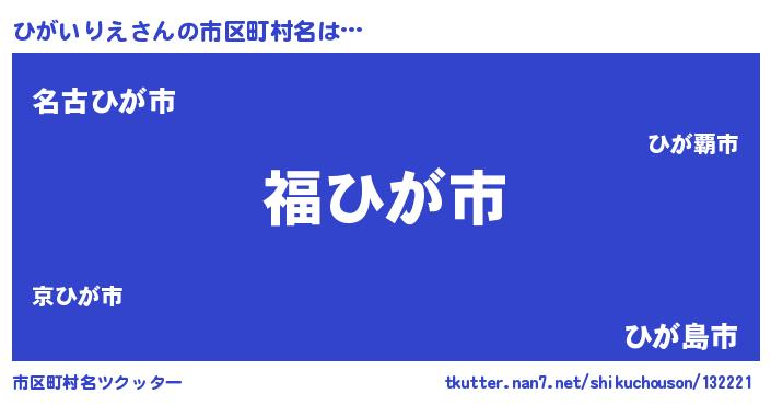| 男性向けラノベタイトル風あだ名 | 『ひがいりえ~年齢イコール彼女いない歴の魔法使い~』 |
