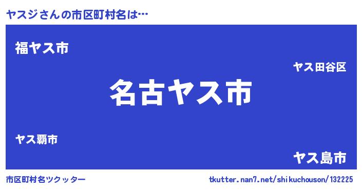 ヤスジさんの市区町村名は… 『名古ヤス市』『福ヤス市』『ヤス島市』 ツクッター #市区町村名ツクッター http://tkutter.nan7.net/shikuchouson/132225/