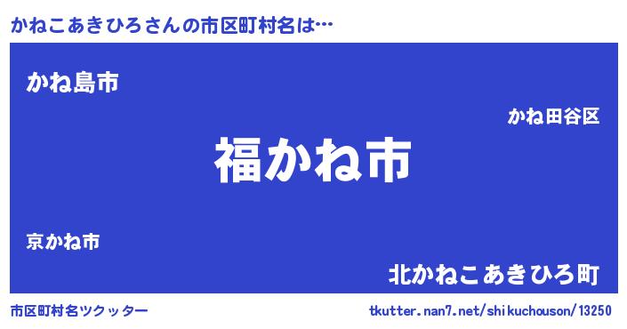 | 男性向けラノベタイトル風あだ名 | 『転生したらかねこあきひろだった件』 |