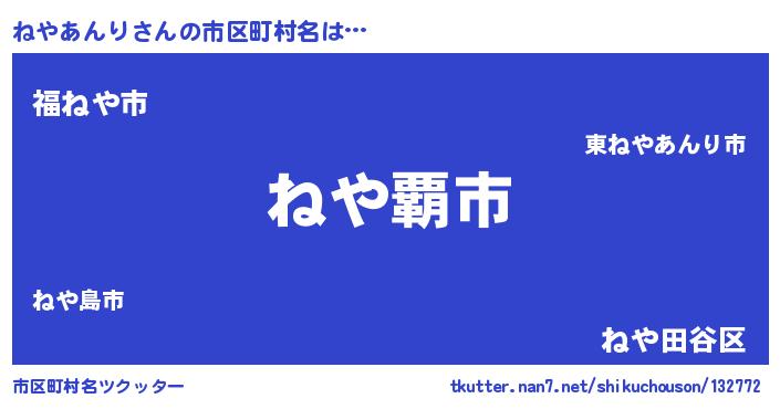 | 男性向けラノベタイトル風あだ名 | 『ねやあんりという概念が存在しない退屈な世界 』 |