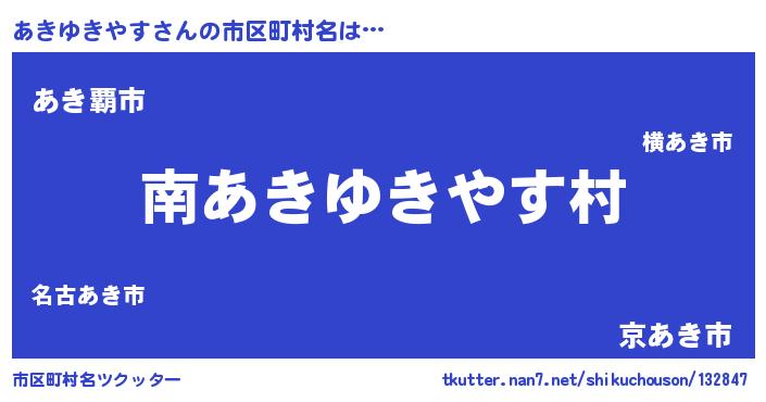 | 男性向けラノベタイトル風あだ名 | 『アキユキヤスアートオンライン』 |