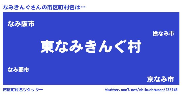 | 男性向けラノベタイトル風あだ名 | 『なみきんぐの憂鬱』 |