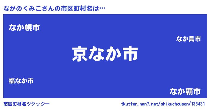 | 男性向けラノベタイトル風あだ名 | 『この素晴らしい世界になかのくみこを!』 |