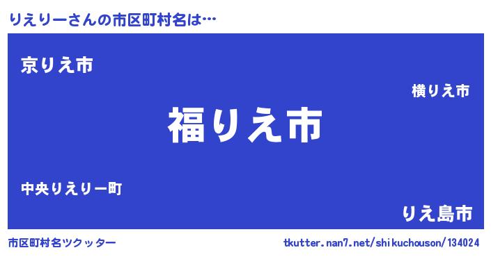 | 男性向けラノベタイトル風あだ名 | 『転生したらりえりーだった件』 |