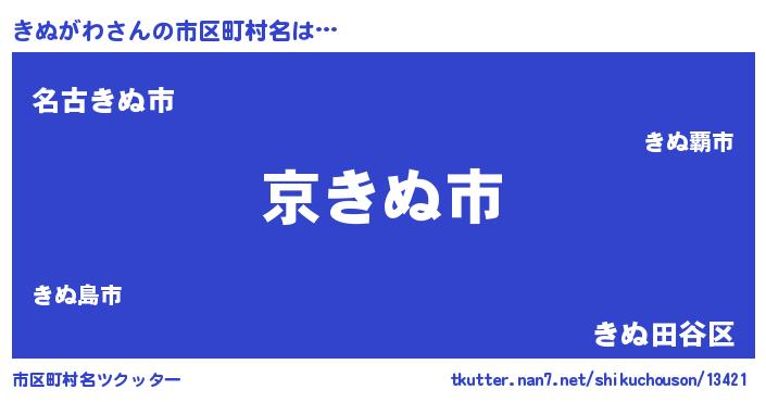 | 男性向けラノベタイトル風あだ名 | 『この素晴らしい世界にきぬがわを!』 |