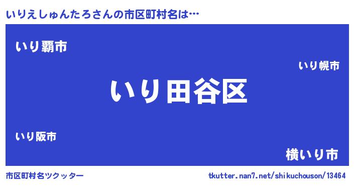 | 男性向けラノベタイトル風あだ名 | 『うちのいりえしゅんたろが世界を掌握している!』 |
