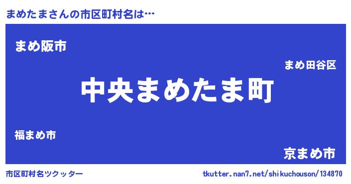まめたまさんの市区町村名は… 『中央まめたま町』『まめ阪市』『京まめ市』 ツクッター #市区町村名ツクッター http://tkutter.nan7.net/shikuchouson/134870/