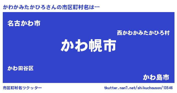 | 肩書あだ名 | 『かわかみたかひろ総理大臣』 |