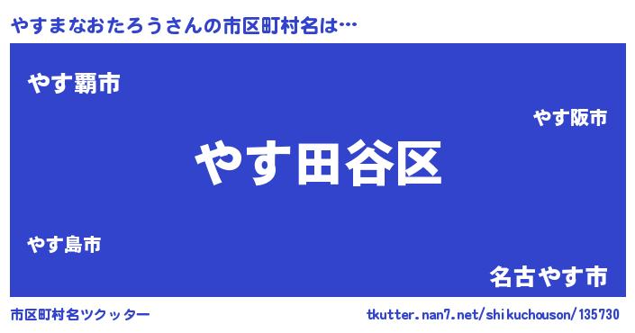 | 男性向けラノベタイトル風あだ名 | 『うちのやすまなおたろうが世界を掌握している!』 |