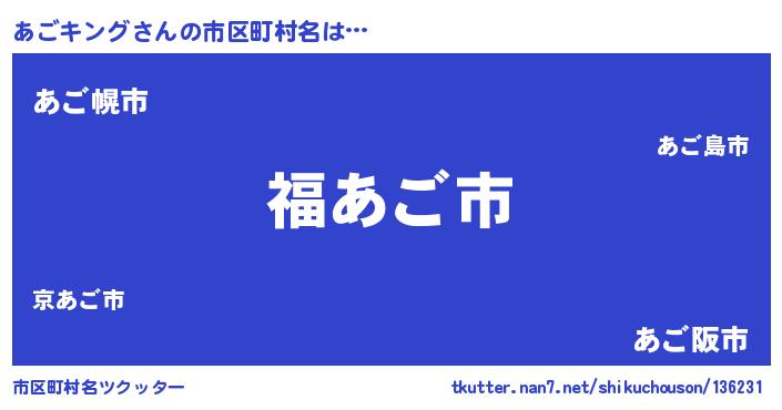 | 男性向けラノベタイトル風あだ名 | 『転生したらあごキングだった件』 |