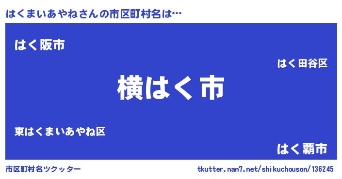 ヘコむあだ名 | 『はくっ子』『はくまいあやね(笑)』 |