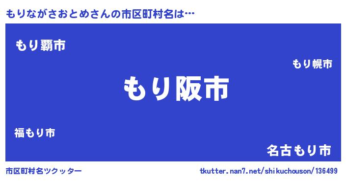 | 意味不明あだ名 | 『とにかく怪しいもりながさおとめ』 |