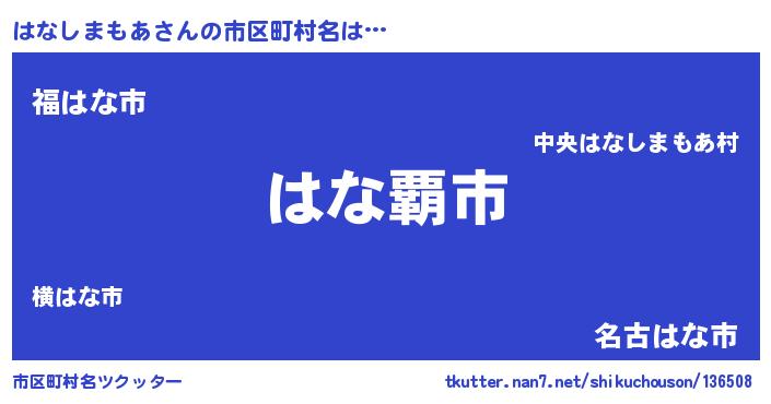 | 男性向けラノベタイトル風あだ名 | 『はなしまもあという概念が存在しない退屈な世界 』 |